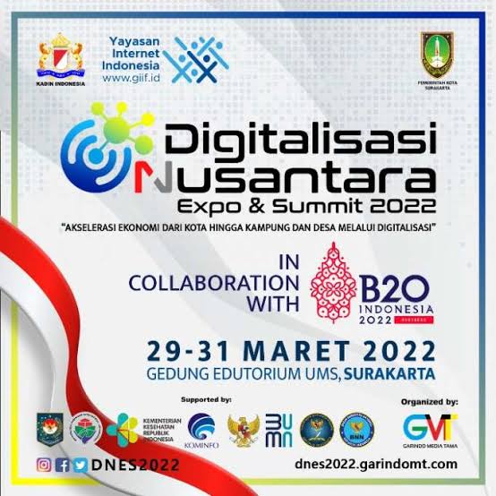 Jakarta – Kamar Dagang dan Industri (KADIN) Indonesia dan Yayasan Internet Indonesia bekerjasama dengan Pemerintah Kota Surakarta dan kementerian terkait menyelenggarakan acara Digitalisasi Nusantara Expo & Summit 2022 dengan tema “Akselerasi Ekonomi dari Kota hingga Kampung dan Desa Melalui Digitalisasi”.